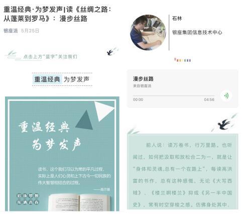 我們充分發(fā)揮“銀座派”微信公眾號(hào)受眾廣的特點(diǎn),特別推出了“重溫經(jīng)典·為夢(mèng)發(fā)聲”專欄,編發(fā)由員工自創(chuàng)自播的優(yōu)秀作品,深受員工喜歡。