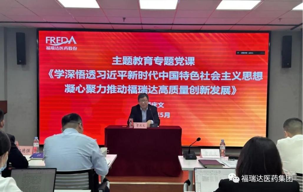 5月30日,福瑞達(dá)黨委書(shū)記、董事長(zhǎng)賈慶文為公司黨員干部作學(xué)習(xí)貫徹習(xí)近平新時(shí)代中國(guó)特色社會(huì)主義思想主題教育專(zhuān)題黨課。