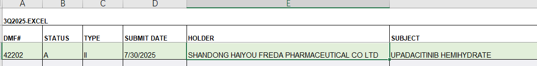 喜報(bào)!海佑福瑞達(dá)烏帕替尼原料藥完成美國(guó)FDA DMF備案